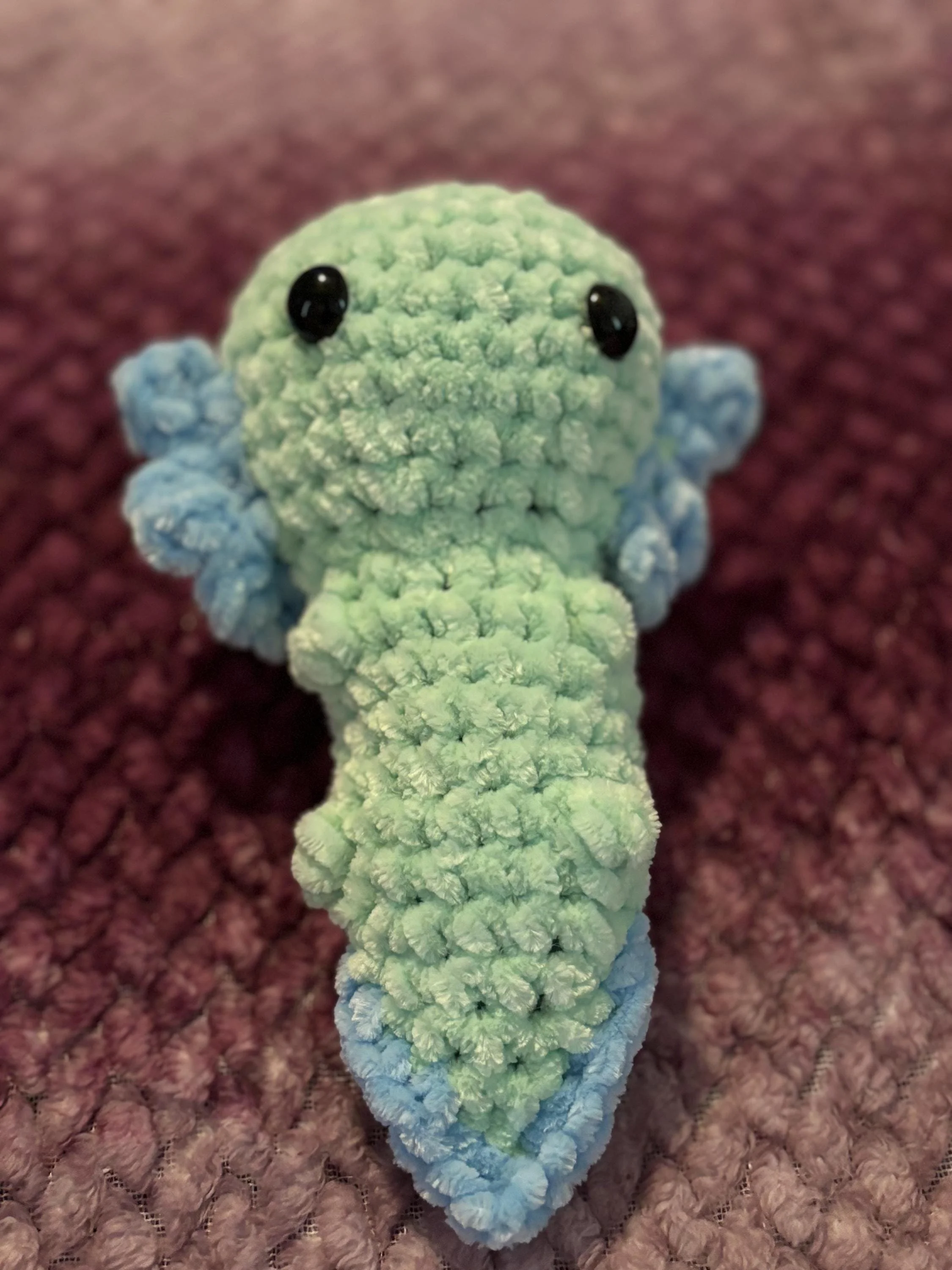 • Handcrafted Perfection: Each axolotl plushie is lovingly crocheted by hand, ensuring that every detail is as unique as the real thing. • Ultra-Soft Chenille Yarn: Made from the coziest chenille yarn, this plushie is wonderfully soft and perfect for snuggling. • Safety Eyes: The axolotl’s cute face is brought to life with securely attached safety eyes, making it both safe and irresistibly endearing. • Aquatic Charm: With its whimsical frills and aquatic features, this axolotl plushie is a delightful tribute to these magical creatures.