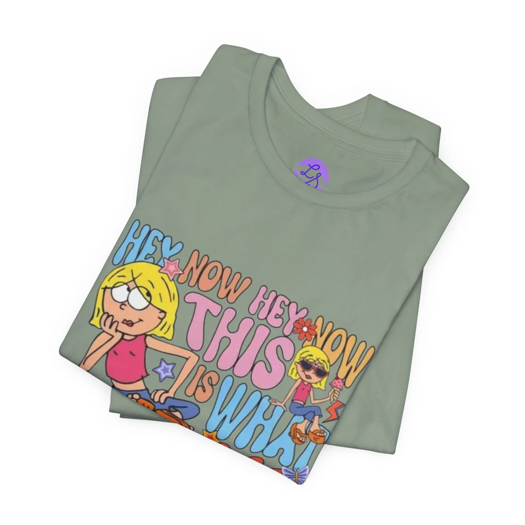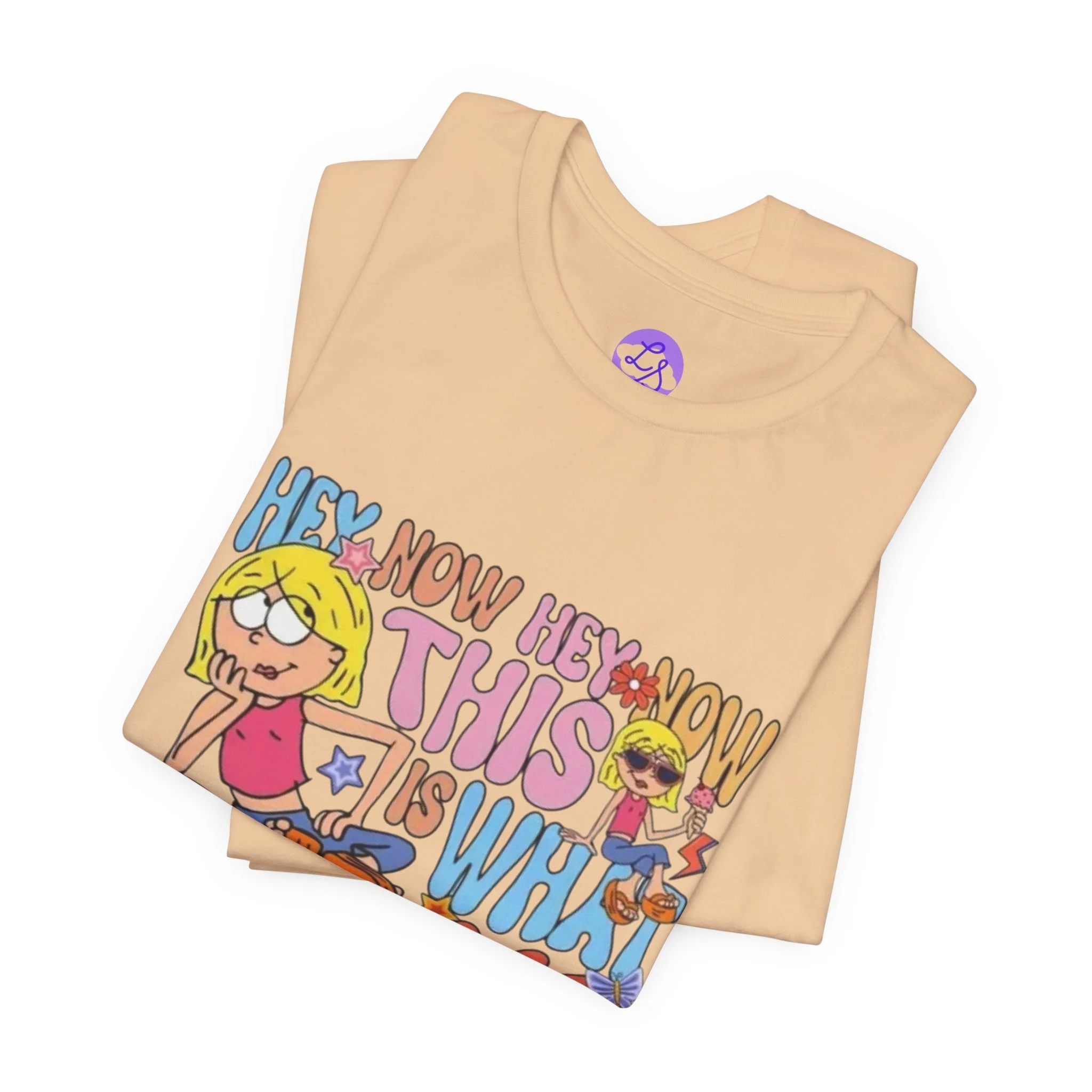 Vintage cartoon energy meets playful nostalgia. This lightweight jersey tee carries a bold, colorful front-and-back print that reads like a sing-along memory — bubbly lettering and cheeky characters that radiate 70s-90s pop humor. It sits casually on the body with a neat crew neck and side seams for a flattering silhouette, and the soft Airlume combed cotton feels cool and breathable whether you’re layering or wearing it alone. The tear-away label keeps the back of your neck itch-free, and responsibly made manufacturing gives this shirt a conscience as lively as its artwork.